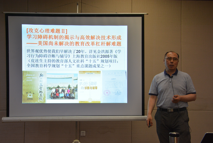 7月17日上午,金洪源教授以“21世纪是心理教育实效技术化的世纪——七大心理难题的突破、创新及其应用”为主题作专题报告。