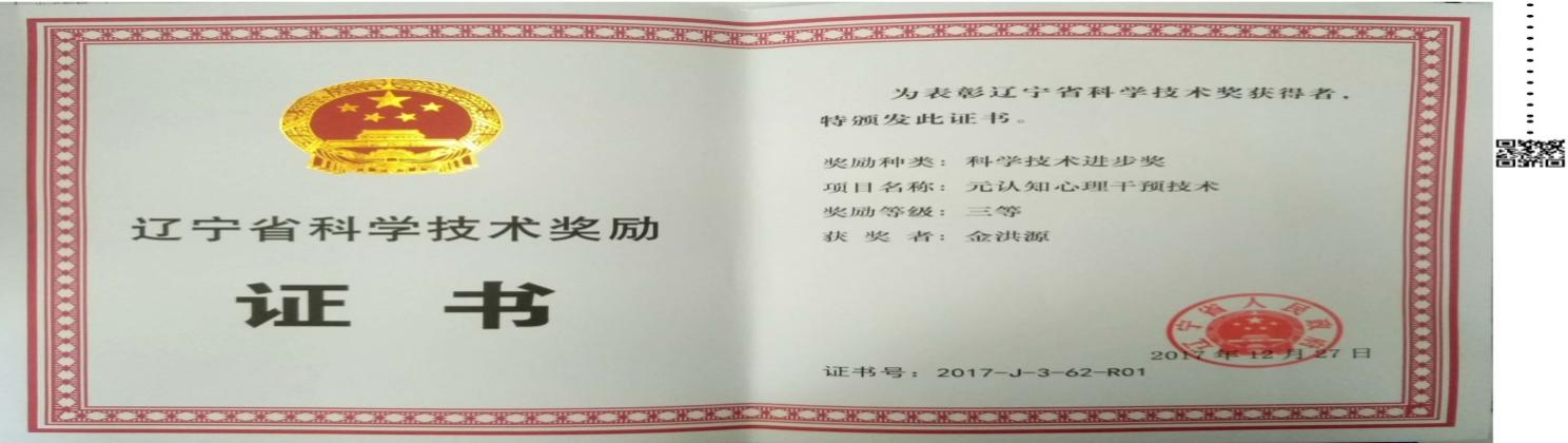 七、2017年10月,元认知干预技术被辽宁省科技奖评审委员会评为“科技进步三等奖”。